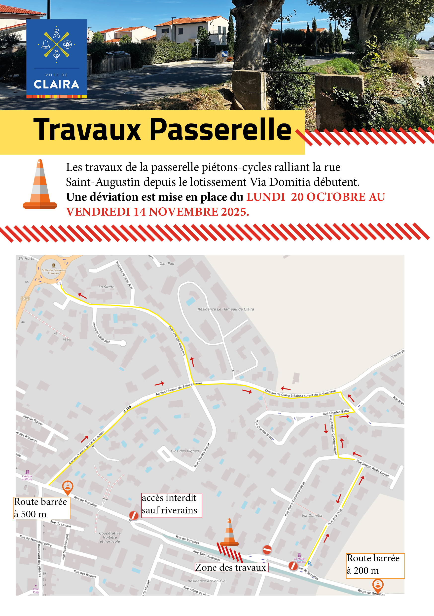 Une déviation est mise en place du lundi 20 octobre au vendredi 14 novembre 2025.
